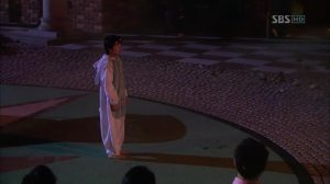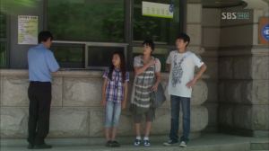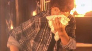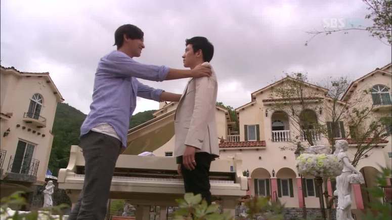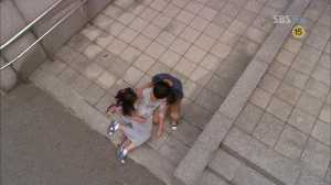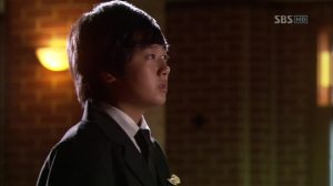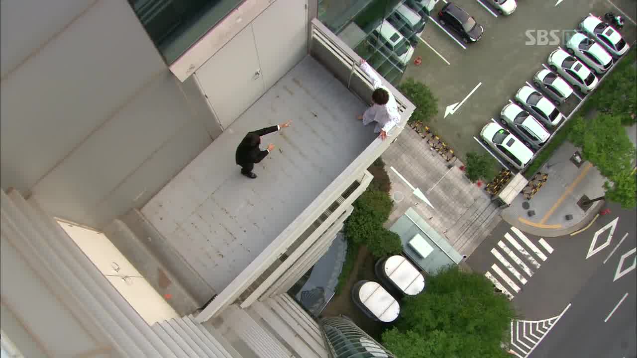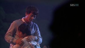 In-ha yells back that if Ji-ho comes any closer, he’s gonna jump!! Ji-ho tells him he can’t do that – -he promised their Dad to help you, and he wants to keep that promise!! In-ha screams at him to stop playing all high-and-mighty, and don’t look at him with his pitiful eyes!! In-ha turns and grabs onto the railing, Ji-ho yells out ANDWAE!!! and lunges towards In-ha as he starts falling. Fade to white…