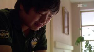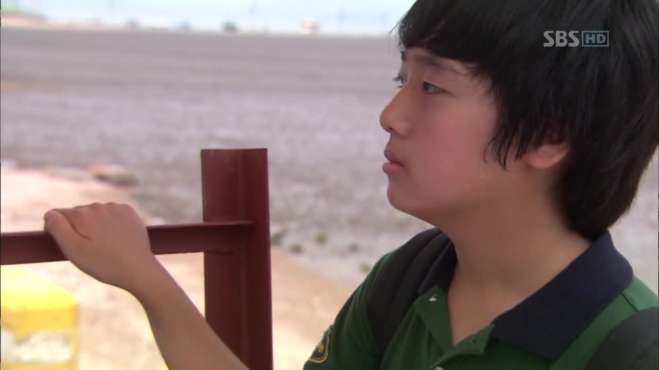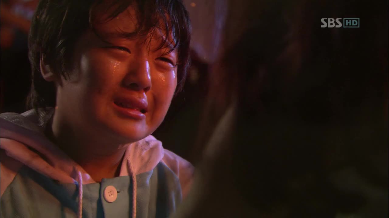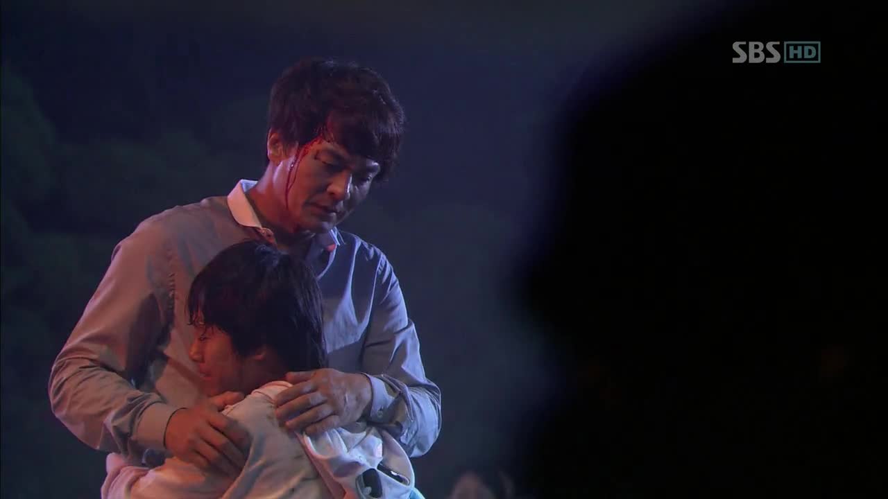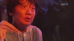 A murmur comes up from the crowd, as Ji-ho turns around to see Man-se on a stretcher being rushed out to one of the ambulances. That was too much for the little puppy, as he yells at his dad not to leave him; he can’t go, so please don’t leave him!! And with a bloodcurdling cry, yells for his APPA!!!
