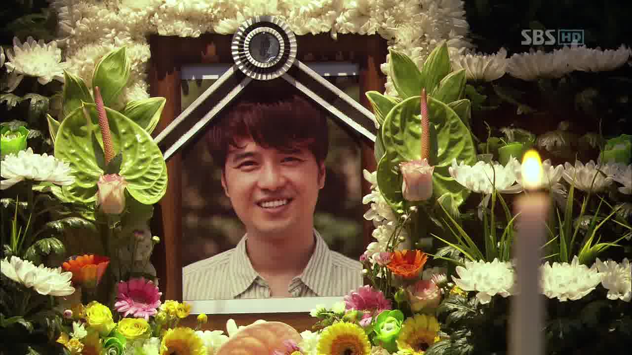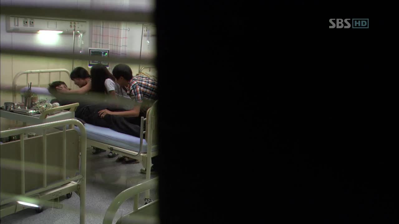 The Hong Family arrives at the hospital (how did they know Soo-pyo was there, hm?) to find Soo-pyo a hair’s breadth away from death. Nam-joo pleads with him to open his eyes, because he can’t leave yet. She doesn’t care what he looks like, just please don’t die. Da-mi sobs that she’ll stop bothering him to buy the family a better house. Woo-jin joins in, telling Dad who said he could die — he’s worked to hard to die now! You could tell that Soo-pyo is trying to say something to his family, but he flatlines and that’s that.