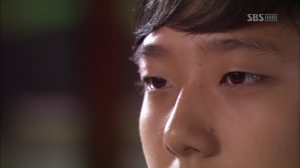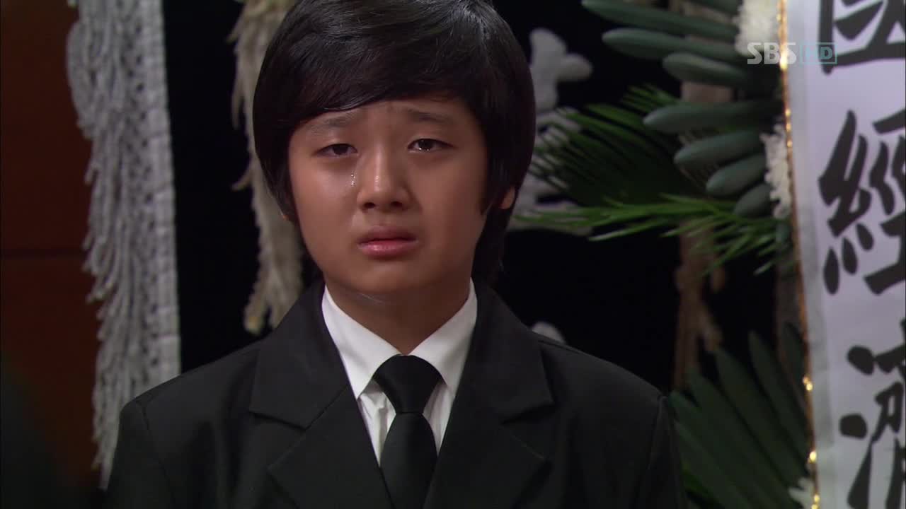 Dropping Man-se’s funeral portrait on the floor, Yeong-rang turns to a distraught Ji-ho and asks him if he’ll be all right staying there by himself? She has to go see In-ha at the hospital, and turns around to leave. Ji-ho stops her by telling her thanks for saving him. That statement actually brings tears to Yeong-rang’s eyes, and she says of course she saved him; she’s his mother, remember? Because Ji-ho is alive, his father will be happy now in his next life because he treasured Ji-ho so much. And she bolts, leaving Ji-ho to then apologize for giving CrazyGran the matches. It’s all his fault that the house was set on fire, but why did she risk her life to save him since he’s a nobody? Poor little puppy collapses in tears in the viewing room…