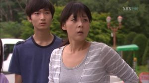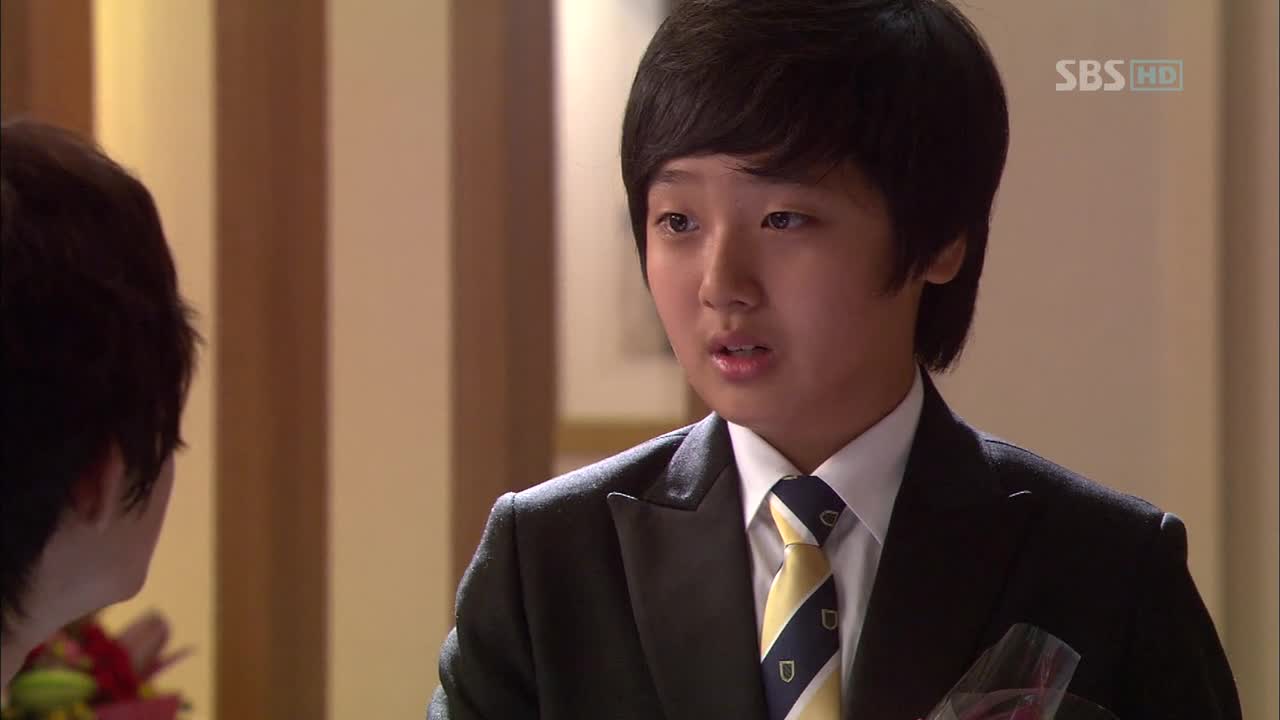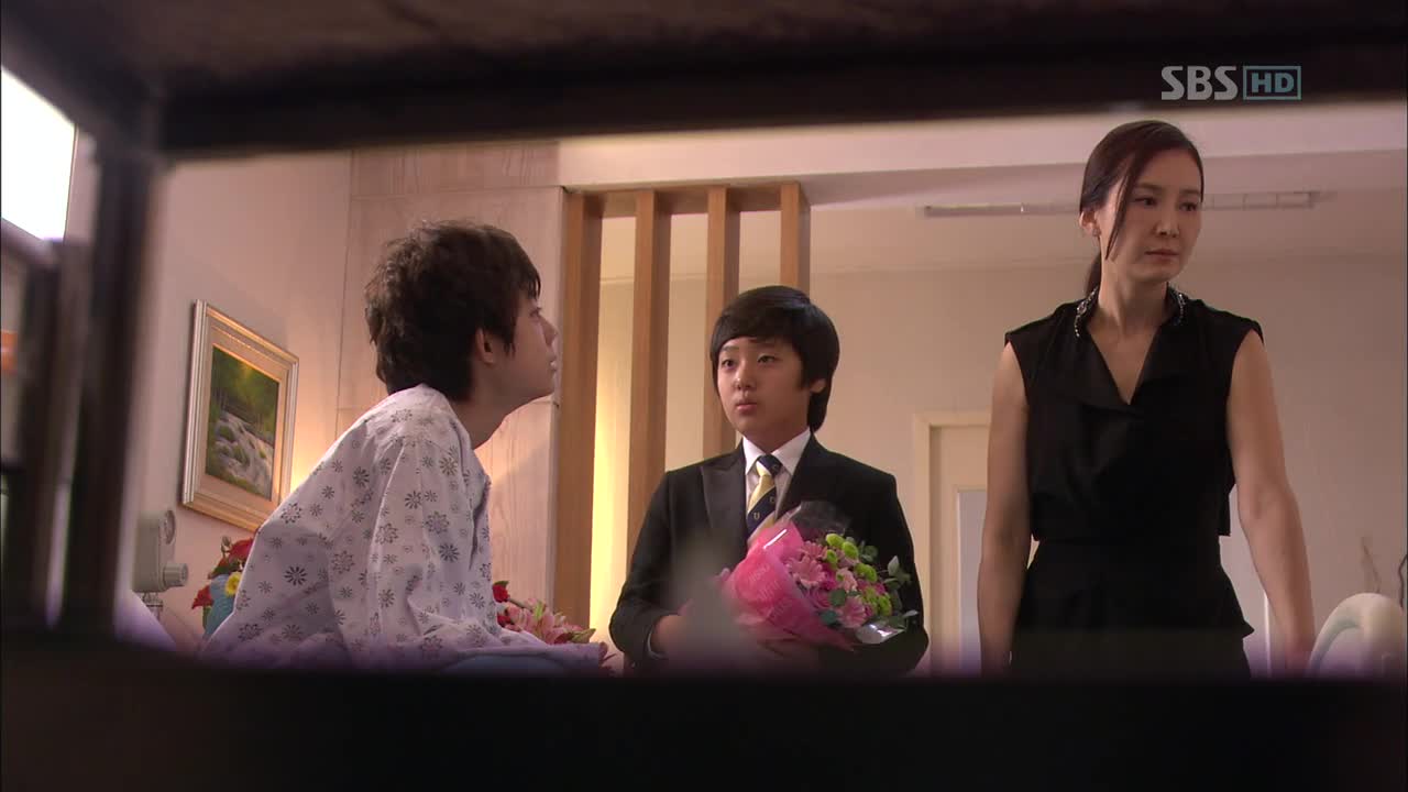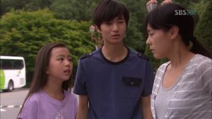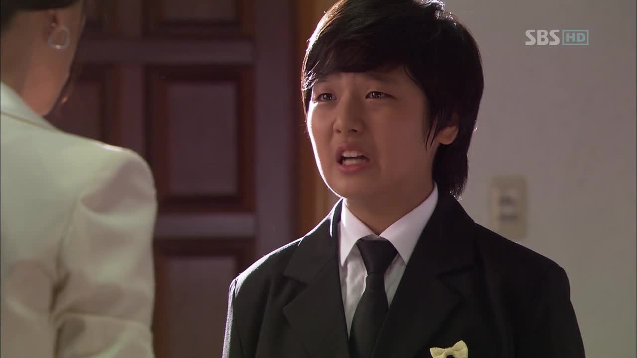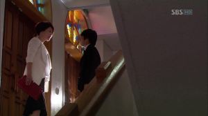 Ji-ho yells back at her that no matter what GRANDMOTHER says to him, he’s not going to let her break his spirit!! He’s not going anywhere, and she’s going to stay with his mom until he dies!! It’s the first time in his short life that he finally has a dad and mom, so why is halmoni getting in the way of that? If she is going to take them away this fast, then she shouldn’t have given them in the first place!! (GO JI-HO!!!) He runs down the stairs away from EvilStep, as she admits he’s got his father’s blood with a temper like that. Hee!