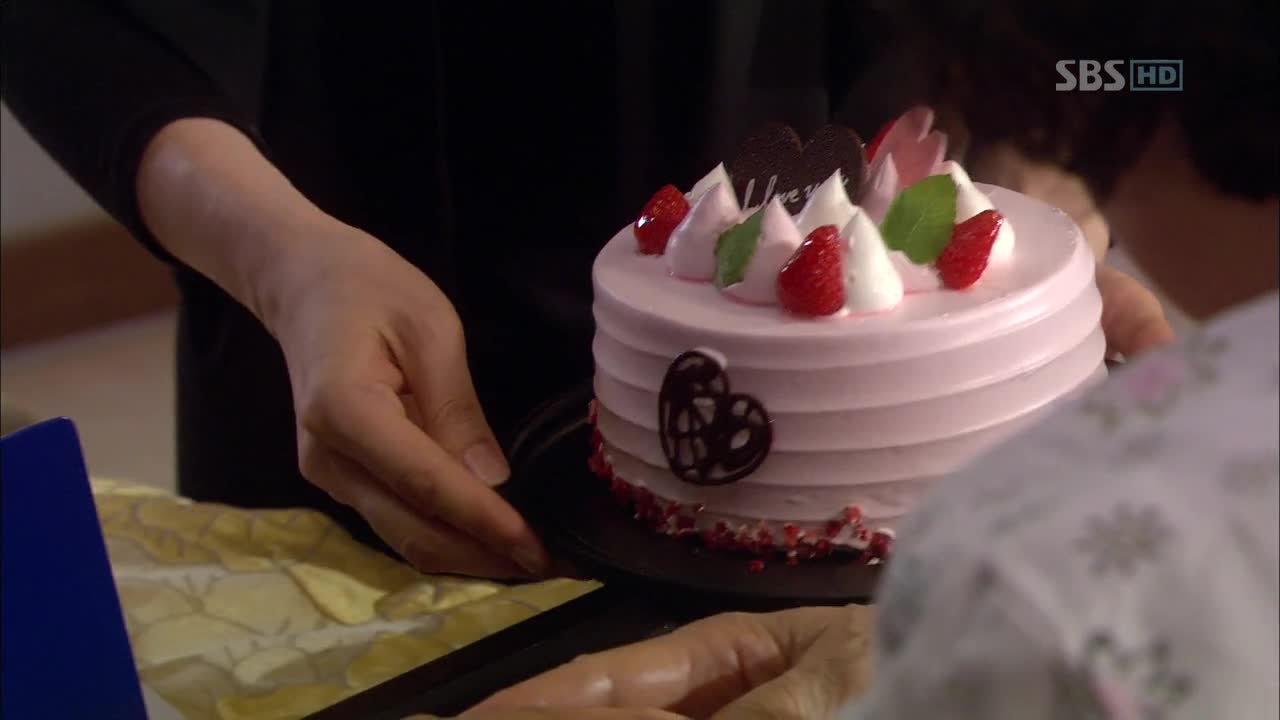 At the nursing home where CrazyGran has been deposited after her meltdown at the funeral service, poor Dong-yi is attempting to feed her but CrazyGran keeps pushing her away. Yeong-rang arrives to check in on CrazyGran and give Dong-yi a brief respite. CrazyGran goes off on Yeong-rang, accusing her of always showing up at the same time she’s eating. She protects her lunch and tells Yeong-rang she can’t have any. Neener neener neener!! Doesn’t faze Yeong-rang one bit, as she’s carrying a Paris Baguette box and pulls out one of their luscious Strawberry Cream Chiffon party cakes, much to the delight of CrazyGran’s falling blood sugar level.