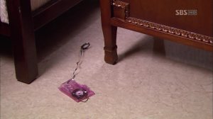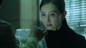 Detective Guy pulls out the bobby pin (wrongly translated everywhere as ‘hairpin’), and asks Yeong-rang if this isn’t hers as well. Did this bobby pin fall off from her having a fight with her husband? She protests, saying she wasn’t wearing that bobbypin; it could have fallen off another day. It can’t be proof that she pushed her husband!! (Emphasis on that, because I’m sure this statement will also come back to bite her in the butt later.) And BTW, she knows nothing about the will. Detective Guy pushes just a little bit harder, when Yeong-rang has finally had enough and tells him she’s going to sue the police for defamation of character. She’s got a child in the ICU, fer chrissakes!! Why call her out because she’s innocent! Detective Guy tells her look here missy — the phone line was cut, the will is torn, and now the bobby pin. It’s more than enough for an arrest warrant!!