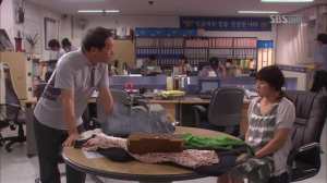 Nam-joo tries to explain that she didn’t know the halmoni came from the President Yoo house; she was just a lady that they gave pancakes to for free, so she assumed she brought these things to show her appreciation. Detective Guy wants to know then why he was found in the house that night — didn’t he go in there to steal more stuff? That’s too much for Nam-joo to handle, and yells at Detective Guy that her husband was not a thief!! And she won’t stand for anyone insulting her husband, dammit!! Detective Guy tells her that apparently Nam-joo was the only person who didn’t know the kind of person her husband was — he cut the phone cord and blocked the study door with a bookcase and ran away!!