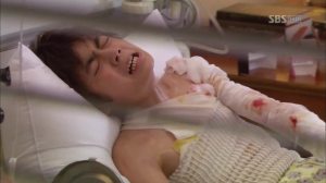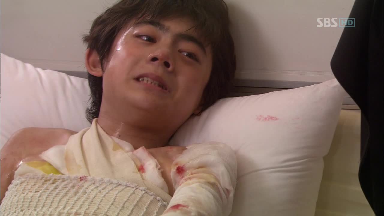 It must be dressing-changing day at the hospital, as we see In-ha getting his burns treated and writhing around in pain. Yeong-rang is there trying to comfort her little burnt boy, telling him to not hold back and just scream his lungs out from the pain. In-ha insists on wanting to be killed instead; how can he live like he’s wearing a turtle shell for the rest of his life? Yeong-rang pleads with him to live, because Mom can help him get better because, well… she’s his mom. (Ooooh, profound.) The nurses are still working on In-ha when Ji-ho comes in to see his dongsaeng.