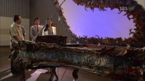 Back at Evil ConHugeCo, Yeong-rang and the manufacturing team are looking over the butt-ugly piano that Man-se had made in advance of her upcoming birthday. She is amazed that the President had it made just for her, and that they’ve been working on it for over a year now. She strokes the beast and says she’s never seen such a masterpiece before… the color and design and everything else is just perfect. Plinking out a few basic chords, she asks which supplier provided the wood for the soundboard — can she see the production records? Supervisor Guy says that there are none — it was the President’s wish to not leave any trace of the production records, even down to the piano construction expert that they scouted from the States and the 30 other craftsmen that participated. Once the piano was completed, everybody was sworn to silence to not release the steps in the making of the piano. Boosung cannot make another piano like this again, and neither can any other company in the world as well.