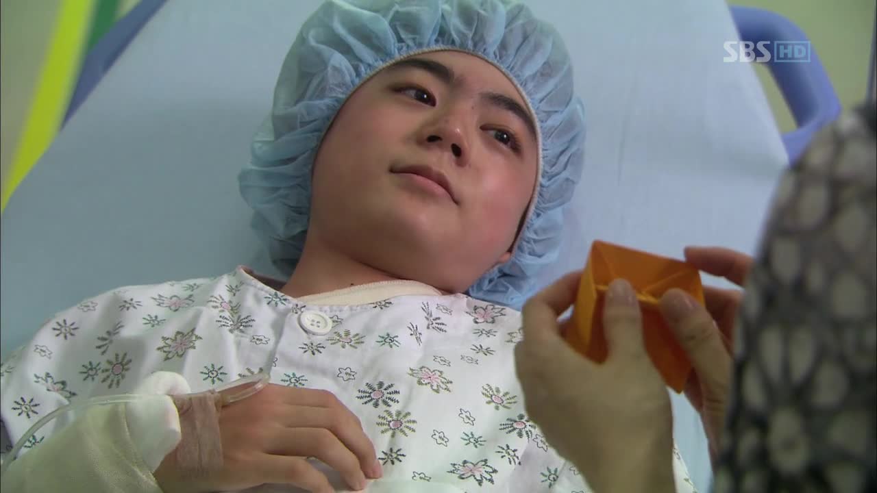 Yeong-rang suddenly realizes that it’s time for In-ha’s first surgery, so she rushes to the hospital to be with him. In-ha is all locked and loaded to go, as she tells him she had a really good dream and that everything is going to go well. In-ha says she’s not to worry about him and that she needs to return to Boosung because of the emergency board meeting. Oh and by the way, where’s his Dad? Wouldn’t he come see him on the day of his surgery? Yeong-rang hesitates before telling In-ha that his father is getting treatments at the same time, so In-ha looks relieved because he’ll get better after 10 surgeries, right? In-ha says that after he and his dad are both discharged, they should travel to Switzerland… just the three of them. Yeong-rang strokes his cheek and tells him that’s a good idea. Before they wheel him in, In-ha hands her a little paper piano as a gift, because it’s Yeong-rang’s birthday today to boot. Watching him head into the surgery room, Yeong-rang finally breaks down.