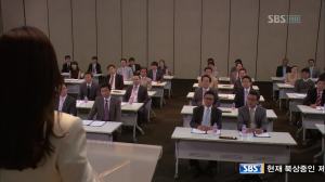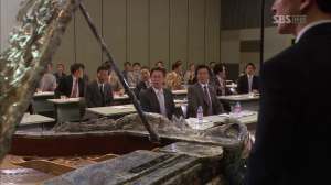 At the emergency Board Meeting, Yeong-rang steps up to the podium to announce that she is bucking for appointment as the new President of Boosung Instruments. She starts off by saying she’s just a normal housewife that spent all her life taking care of her husband and son, but since he’s now dead, she wants to continue her husband’s dream by taking over Boosung. Everyone knows that she was a former concert pianist, and that she knows a piano backwards-and-forwards… especially which piano is the best. Your typical contrarian Board member speaks up to call bullshit on her — the Board can’t trust her family love to take care of the thousands of employees at Boosung. Realizing there would be pushback, that’s why she’s prepared a little presentation for the members gathered…
