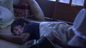 Returning to the hotel later, In-ha is fast asleep with Yeong-rang at his side. He sneaks over to In-ha’s bed and in voiceover, tells his dongsaeng to get healthy and don’t hate mom. That’s the only favor Ji-ho asks of him. Looking over at Yeong-rang, he smiles and tells her that she’s beautiful; she shouldn’t have to cry anymore….
