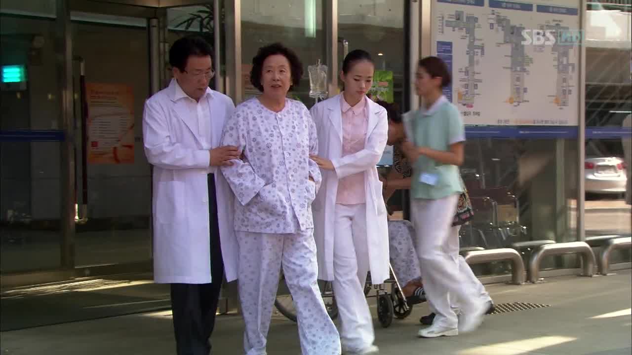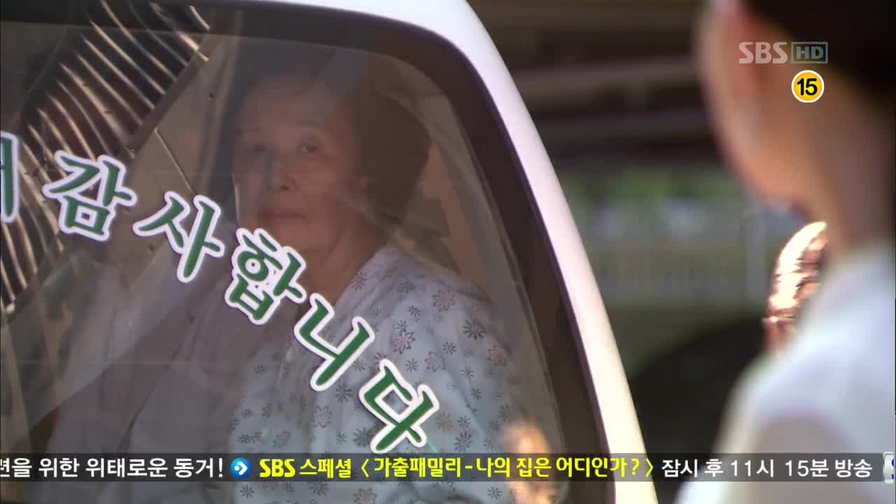 Awwww, looks like CrazyGran is off to another nursing home. She runs up and tells her ‘unni’ to come and visit soon; she’s going to decorate their room up extra-special for her visit. Leaning in to Yeong-rang’s ear, CrazyGran tells her sotto voce that this place is filled with crazy people — take care! (snerk) The nurses load her up onto the transport vehicle, and CrazyGran waves bye-bye as they drive off. What’s that? Are there actually tears in Yeong-rang’s eyes?