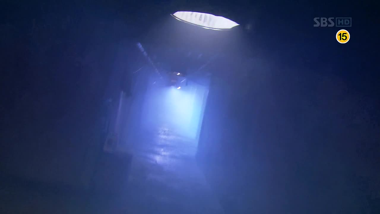 A long, dark hallway with a bright light at the other end. Someone’s heavy breathing (and for once, not mine). We see In-ha’s shadowy face looking back over his shoulder like he’s running away from something… The Blair Witch-y camera work continues, as the nightmare owner flashes back to the time when Dead Burnt-Up Dad tossed In-ha into the family pool saying that he was embarrassed to have In-ha as a son, In-ha pleading for his Dead Burnt-Up Dad to forgive him for his transgressions, the fish tank bath, escaping from the fire… all the while trying to run away from whatever (or whoever) is chasing him.