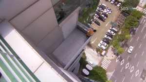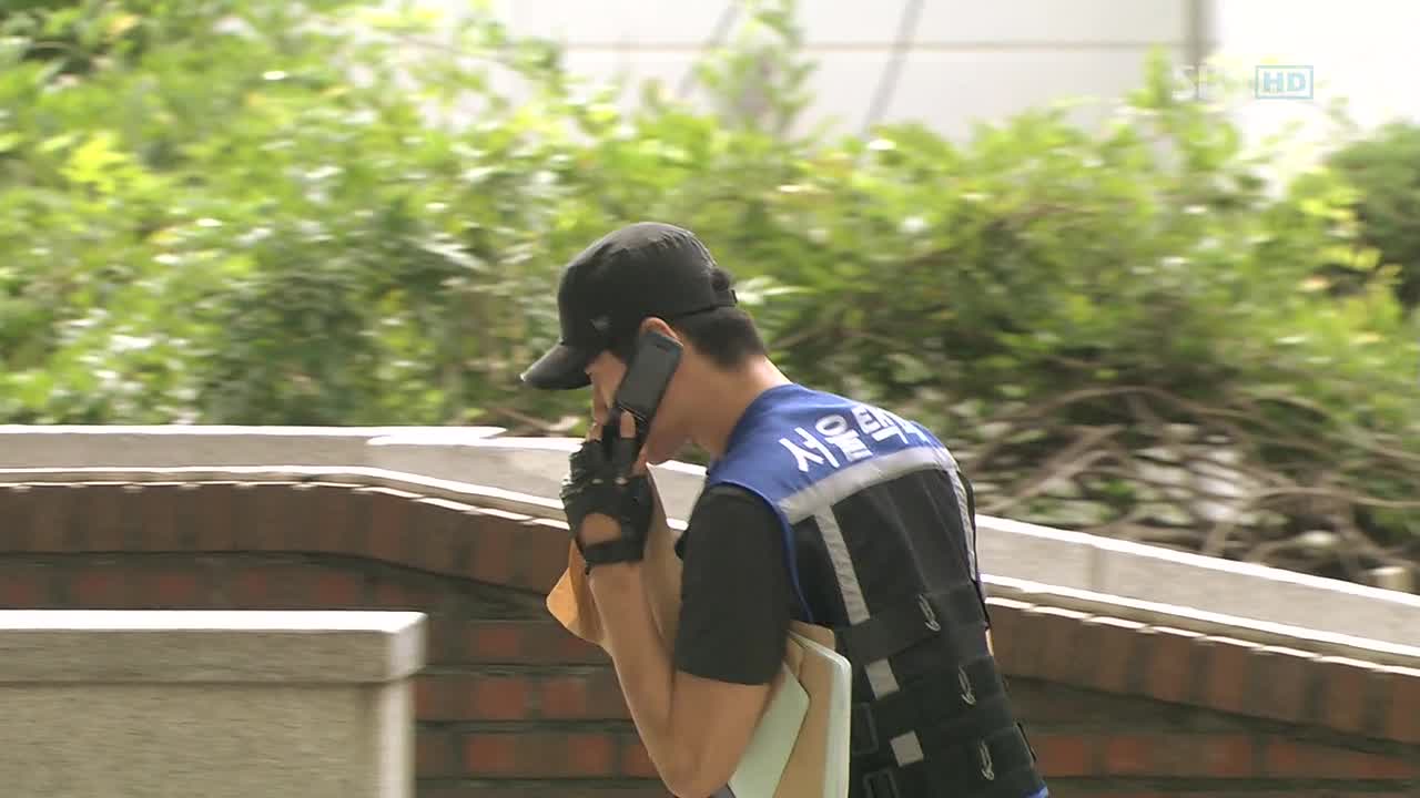 Ji-ho runs like a bat out of hell towards the Administration Building. In the Security Department, the tapes and other items are being boxed up by the security guard who lied in the first place after the CCTV viewing. He runs out the door with the box two seconds before Ji-ho runs inside. Another security guard unlocks the door to the CCTV tape room, as we see Ji-ho hiding around the corner listening to the keypad tone sequence. Security Guard #1 runs up to the Seoul Delivery Guy and throws the box onto his scooter and he peels outta there.
