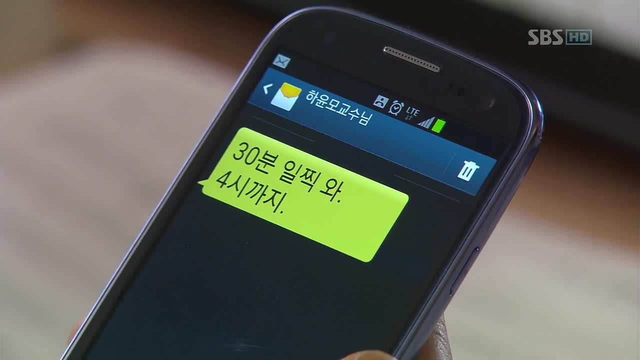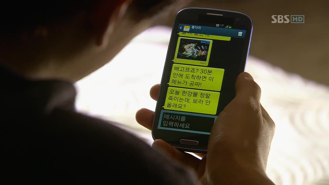 Da-mi is reading the blogosphere’s take on the purloined sheet music; as expected, the netizens have taken Ji-ho to the woodshed for his role in the posting of the Professor’s unfinished composition. She flashes back to one of his students throwing the sheet music in his face outside the music department. Picking up her phone… Ji-ho lounges across his bed, as a text arrives. It’s Da-mi all bright and chipper, asking if they are still scheduled for her lesson today. He tossed the phone onto the bed and goes back to rest. Another text arrives; this time, she entices him with a free meal if he responds within 30 minutes. Not having any of that, he tosses the phone back onto the bed and curls up in a fetal position. Yet another text arrives; Ji-ho is clearly pissed off, but looks at it anyway. Da-mi suggests they walk along the Han River since it’s so pretty out today. This time, Ji-ho just throws the phone across the room and lays back down.