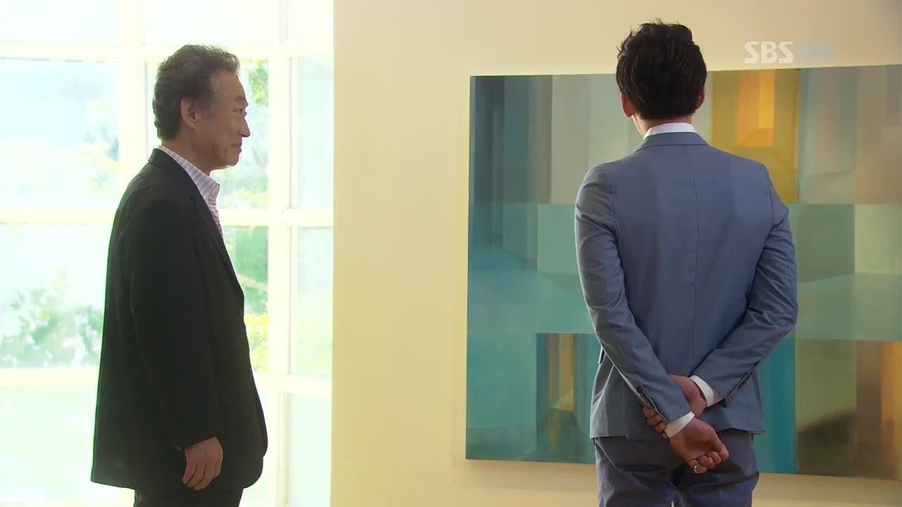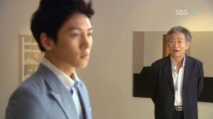 In-ha stares at an abstract painting in a local art gallery, but in actuality he’s put his Stalking Hat on, as he sees Professor Ha out of the corner of his eye. Professor Ha notices In-ha and comes over to say hello, as In-ha does the ‘fancy meeting you here’ tap dance with him. When the Professor asks, In-ha tells him that he’s there to clear his head and think about some things since he hasn’t had the chance to do so since returning from the States. He continues the charade by telling the Professor that they have a lot in common with their music and the arts. Attempting to play Art Critic, In-ha pontificates that he sees in himself the loneliness that the painting in front of them is trying to portray, but then stops and apologizes for being so blunt. Professor Ha just brushes it off, and they move on to the next painting… as I reach for my hipwaders. It’s getting DEEP in here!