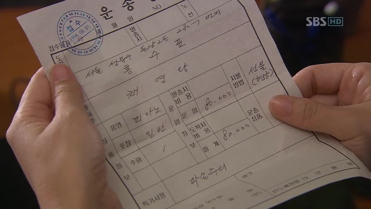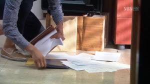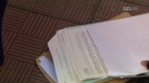 Nam-joo decides to be productive and cleans Woo-jin’s room. Putting some random papers in his desk drawer, she comes across THE ENVELOPE. Wondering what’s inside, she sees the official receipt for the piano, dated the day of the fire. Woo-jin walks in, saying he’ll take care of the cleaning but then sees Nam-joo staring at the piano receipt. She demands to know how he came into possession of it, and he says even though the envelope was addressed to him, he has no clue as to who sent it. But the only thing he recognizes are the numbers: 0807. 7 August. The day that Soo-pyo died. Nam-joo rips him a new one, saying that why is he hiding something so important — he should have told her right away that he held the delivery receipt!!! Woo-jin apologizes and says he was going to say something after he investigated further and actually had some concrete evidence.