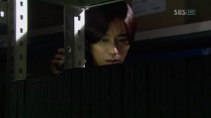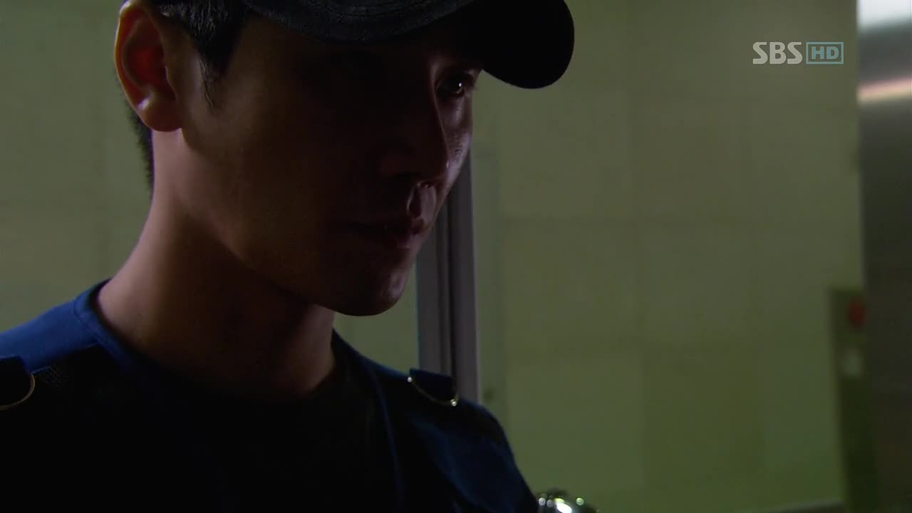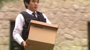 Entering the office, Ji-finds the Professor gone but the door to his safe open, with documents spread all over the floor. Saying that the old guy must have been too busy to clean up, Ji-ho starts stacking up the documents when one of the teaching assistants pops in to tell Ji-ho he’s needed in another room (all the while taking a long look at Ji-ho placing the papers back into the Professor’s safe). A little bit of covert activity ensues, with a security guard ejecting the surveillance tape and handing it off to… the same Delivery Guy in a darkened stairway. (THE HELL? They think they’re playing ‘Mission Impossible’ or something?)
