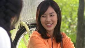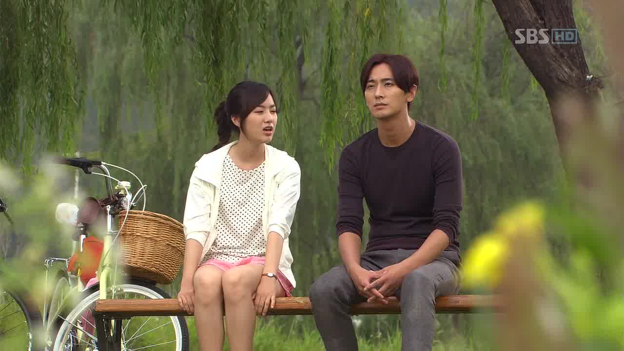 Waiting on the bike path near the river where they collided a few days ago, Da-mi is waiting and waiting and waiting. Thinking that he’s blown her off, she gets ready to leave until Ji-ho pulls up alongside her claiming that the Han River doesn’t look pretty today… all he sees are old ladies out and about. She chides him for twisting her words, as he chides her for speaking banmal to him; he is her teacher, by the way. Da-mi asks if he’s so annoyed over that, then he needs to catch her, as she hops on her bike and rides off. With a sigh of resignation, Ji-ho follows her down the path. Meanwhile (and for once), In-ha is not throwing a tantrum or crying hie eyes out. He sits on the couch admiring the dolphin keychain and gets giddy-kissy all over thinking about meeting up with Da-mi again. *sigh*