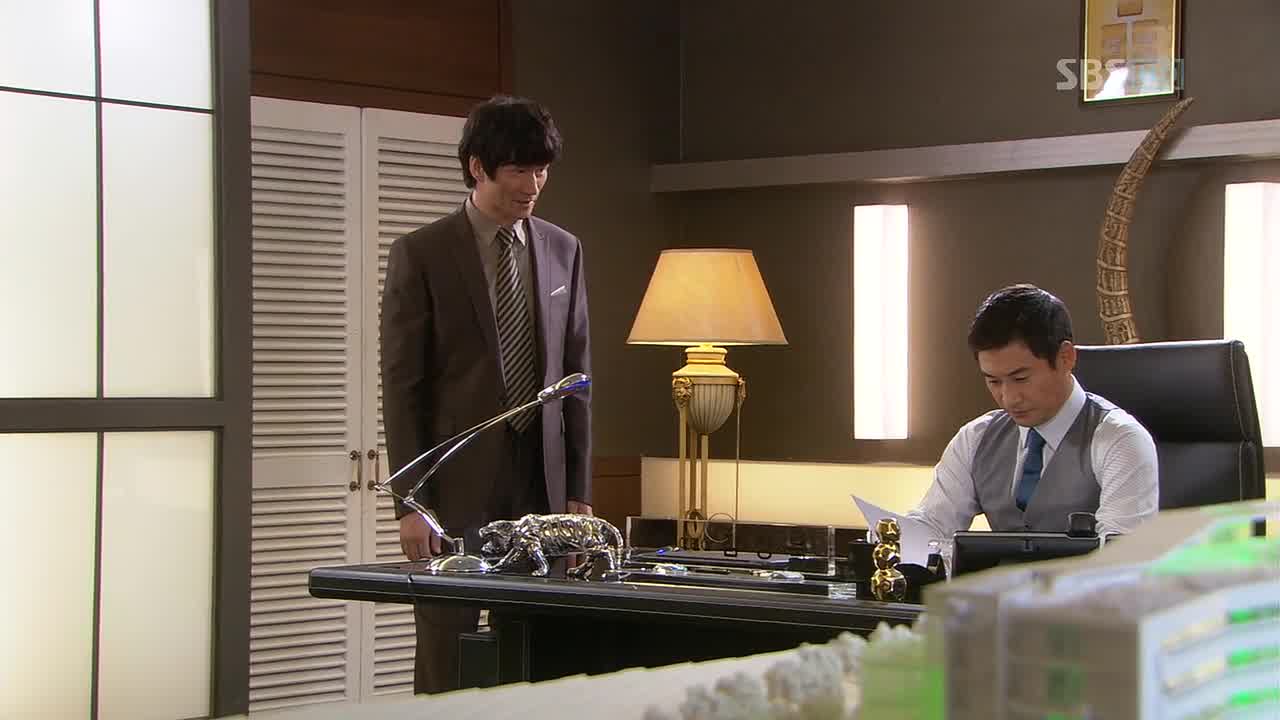 Ji-ho arrives at Boosung HQ and sees Secretary Oh, but not his mother. Asking why he arrived without calling first, Ji-ho lies to say that he is having dinner with her, but Secretary Oh heads that off and tells him that she just left for a very important appointment. Ji-ho that’s too bad; maybe he should have called first and turns to leave… but then turns back around and wonders why Secretary Oh is at the office and not with Yeong-rang. He’s pretty much his mother’s shadow, is he not? Secretary Oh stammers that he had some work to do at home and that’s why he didn’t accompany her this time around. Ji-ho just smiles and tells him he’s working hard enough — why doesn’t he knock off early tonight instead? As Ji-ho heads for the door, an assistant comes in with a metal suitcase, and handing it to Secretary Oh, tells him here’s the $200M won he requested.