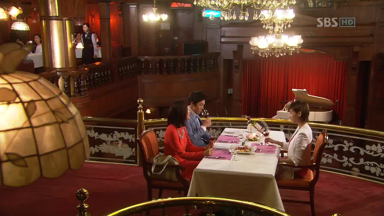 At yet another Swanky Restaurant, wine glasses are clinked in a toast. Yeong-rang, In-ha and So-yeol are there celebrating So-yeol’s first day as the Boosung Manager of Research and Development. she says she likes it, since the company is much more solid than she thought. Yeong-rang says they still have a long way to go, but with So-yeol on board, they can finally move forward. In-ha pipes up saying he’s pleased to meet her, since his mom spoke often of her. And since she’s Professor Ha’s daughter, she also brings to the table the piano-making skills she honed while studying in Italy. So-yeol tells him she’s looking forward to working with Boosung too, since she’s on ‘very friendly’ terms with Ji-ho as well. Yeong-rang says that gee, you two have so much in common that you should meet up more often to ‘get to know each other better.’
