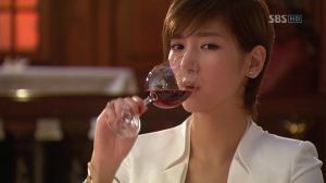In-ha is curious, though… does So-yeol always think that chance encounters work the same as business meetings? So-yeol says sure; a person has nothing to lose by being on her side, because she can help that person by all means. Is In-ha having any problems with her father, by any chance? In-ha looks pained and says that it might be better to have a meal at another time… he’s not about to kiss her ass in order to become her father’s student. So-yeol tells him he’s misunderstanding her statement, but he gets up any way and basically says “don’t call me; I’ll call you” and stomps out, leaving So-yeol to wonder why In-ha has such a stick up his butt. Now all this yummy wine IS MINE!!!