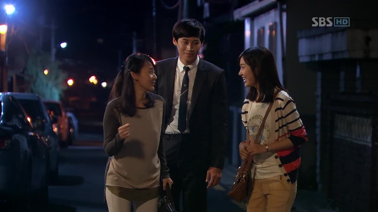Walking home later that evening, Da-mi keeps a respectable three paces behind Nam-joo. Signing to her that he mom must be strong like an ox, because she has bruises everywhere now. That rattles Nam-joo enough to run over and asks Da-mi where it hurts; where are the bruises? She pulls Nam-joo off her, as Nam-joo apologizes for beating her up like that. Da-mi says that her behavior wasn’t the best either because she yelled at her too. Saying that their Dead Deaf Dad would be rolling over in his urn if he saw them now, hitting and rebelling like that. Both of them looking up to the sky, they both wonder if it was him who stepped in from the heavens to make them stop fighting. Woo-jin wanders up behind them, and asks why they’re staring so intently at the streetlight. Da-mi asks where he’s coming from all dressed up in a suit like that, to which he lies and says he’s returning from a sunbae’s wedding. They should hurry up and get inside, because it looks like it’s going to rain. Nam-joo, remembering that the laundry is still hanging outside, challenges her kids to a race back to the house; first one there gets to use the bathroom!