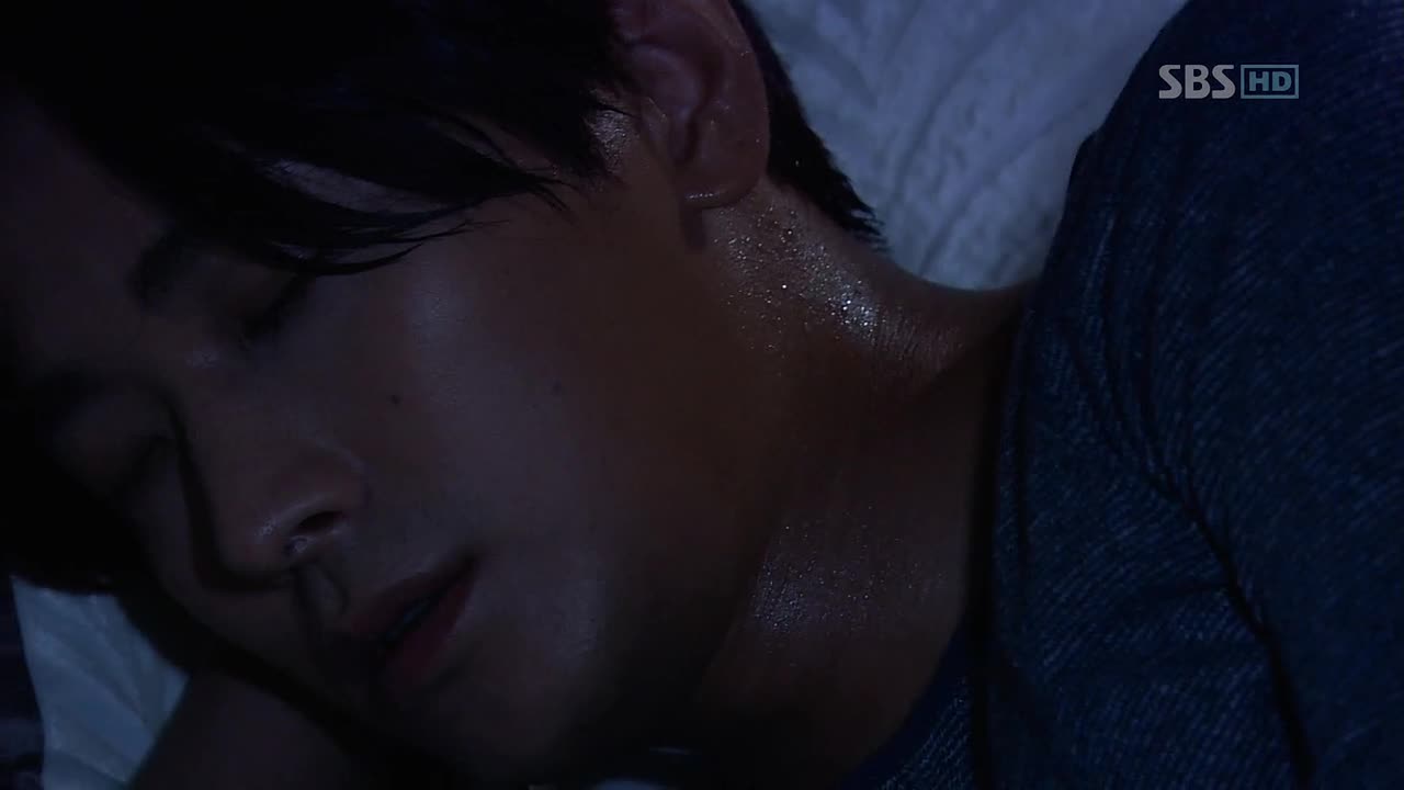 Daylight, and In-ha bursts through the same door at the hospital where he threatened to jump off the balcony 14 years before. Right behind him is Yeong-rang, who sees In-ha hanging over the edge and yells out to him to stop! Yelling ANDWAAAAAAE!, she pleads with him not to jump. But with tears in his eyes and a vacant look on his face, In-ha flies over the balcony railing anyway. Yeong-rang bolts upright in bed, gasping for air. (Wait… that WASN’T In-ha’s nightmare? OR WAS IT?!?)