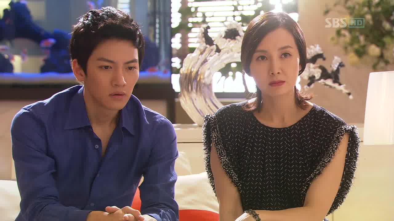 EvilStep chastizes Yeong-rang for not going into the office and instead lurking around Ji-ho’s room all morning. Yeong-rang fibs and says she felt sick, but is much better and will head over to the HQ right now. EvilStep turns to her and asks if Yeong-rang has finally decided to put all of her enemies inside a football stadium and strike them dead with lightning? It’s such a waste of time; she’s still young and rich… why not find a nice man to settle down with? Yeong-rang tells her she’s not interested in men anymore (say!), but EvilStep wonders if it isn’t why she’s still hung up on Jung-wook (J.W.) or because she’s still feeling guilty over Man-se’s untimely demise?