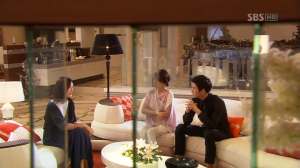 Ji-ho produces two gifts boxes; one for his mother, and one for EvilStep (deferred to her wishes to be called ‘Madame Na’ instead). It’s Scarf-Giving Day at the Yoo residence, as each of the women get their own gifties. Yeong-rang asks Ji-ho if that’s the reason he left so early in the morning when she was looking for him. (Early? Must be lots of 24-hour Scarf Stores in Gangnam-gu.) EvilStep tells Ji-ho he’s acting exactly like his father used to; he may have been brusque all the time, but that boy did bring around some good presents. Of course he must have kept tons of presents handy in order to keep so many women happy, as Yeong-rang interrupts to be aghast at her saying something so crude in front of her son! EvilStep snorts that he’s not a kid anymore; why shouldn’t he know that his father was a horndog all his life? Besides, Ji-ho wouldn’t be with them now if it wasn’t for his sleeping around. (AWKWARD.)