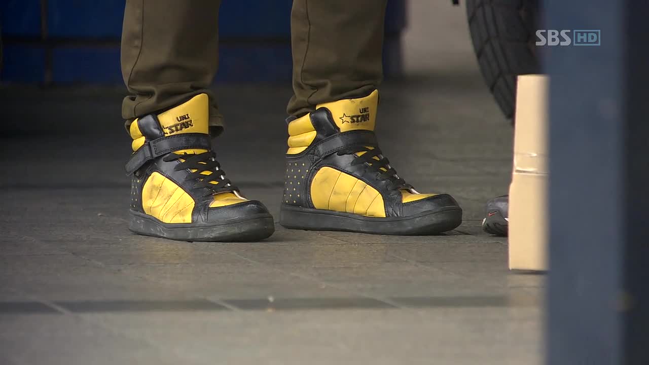Following the Seoul Delivery Scooter back to their warehouse, Ji-ho lies (lays?) in wait for the Bad Delivery Guy to show up. You may be asking yourself, how is he going to recognize him since pretty much everyone there looks the same… until one guy shows up not in uniform and wearing those ridiculous glow-in-the-dark yellow Converse Uni-Star high-top shoes. The same shoes Ji-ho saw underneath the entrance to the restaurant dining room!
