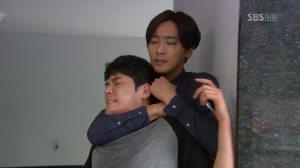 They hug away, just as In-ha comes down the stairs to observe such a little happy family scene. Clearly not pleased to witness such an exchange, In-ha heads back into his room to take out his anger on his bath towel (no other lamps were harmed in the making of this scene). Flashing back to his conversation with Da-mi the night before in the cafe, and summoning up his best Indiana Jones voice. In-ha mutters “Ji-ho… WHY did it have to be Ji-ho?” He asks the air if there is still more for Ji-ho to take from In-ha… as perfection reigns in his own Evil Death Glare From Hell.
