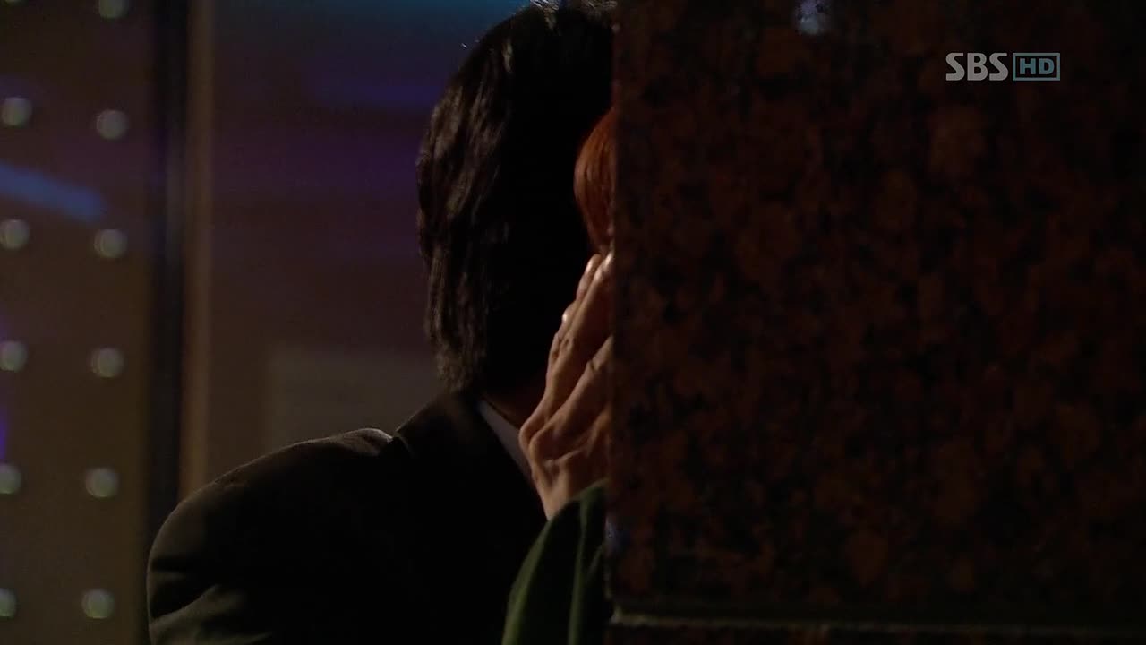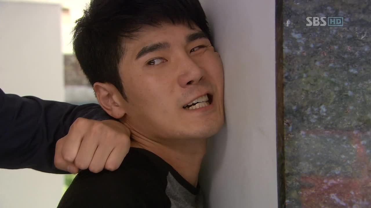 Flashbacking again to when Man-se was smacking around Yeong-rang in the study… yada yada yada. What we didn’t see the first gazillion times around was Dong-yi witnessing the whole thing, but being too scared to utter a peep, backed up in fright and knocked over CrazyGran’s inferno birthday cake. In voiceover, Attorney Choi tells Dong-yi he heard the whole thing… a young woman’s voice calling 911 to report the fire. Dong-yi tries to not believe his words, but again pins her up against the building to remind her that CrazyGran took all the blame for the fire and in the process, lost her mind that she killed her own son! (Nam-joo still listening intently… )