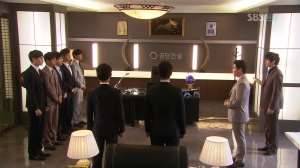 Back at Geumdan Construction, Jung-wook is going over the results of the land grab… uh, purchases the recruits were able to acquire with their shiny suitcases full of gold. So it’s Presentation Time, and he has the utmost confidence in each of them to bring his the best results purchased with their $100M won… and their thought processes in choosing such a site. The five recruits all get up and make their pitches to Jung-wook until it’s Woo-jin’s turn. With amazement, Jung-wook asks him to explain his purchase, as Woo-jin says he was fortunate enough to buy his land for only $80M won because of the difficulty in selling it because it was so stony and steep. Jung-wook looks confused, until Woo-jin explained that he spoke with a landscape architect to sell all the stones on the site for $600M won. Once the land is cleared, it should have no problem accommodating a high-priced resort because of its beautiful scenery. Jung-wook lets that all sink in…