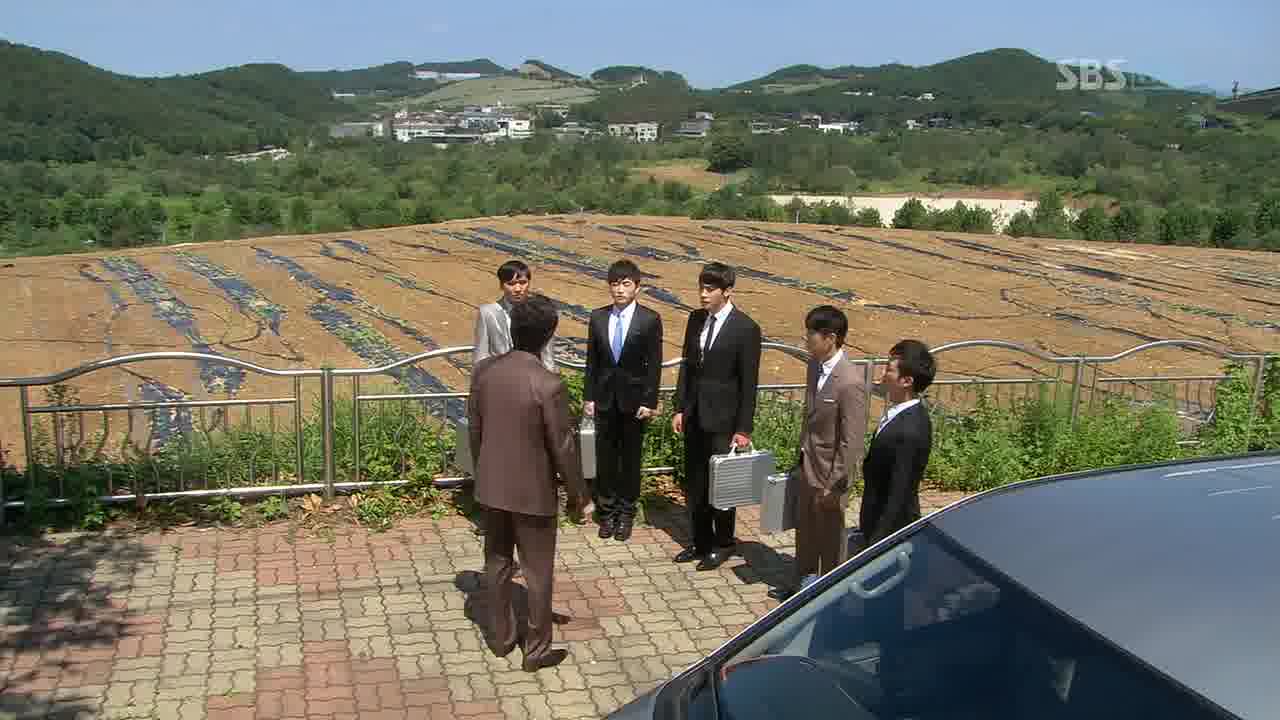 Woo-jin attends New Employee Orientation Day at Geumdan Construction, as Jung-wook rallies the troops around him and says they should prepare for battle now. He outlines a special mission for each of the new recruits, as Assistant Guy hands out shiny aluminum briefcases all containing $100M won in cash. Using that money, they each must find a piece of real estate and make the best contract possible without spending more than what they’ve been given… but they can use any means possible to get the land under contract. There’s a van waiting in front of the building, so hop in and let’s get this Purchasing Party started! The van drives them out to the edge of Incheon, where Assistant Guy tells the five recruits that they’re on their own now so head off to wherever they wish. Woo-jin looks around aimlessly…