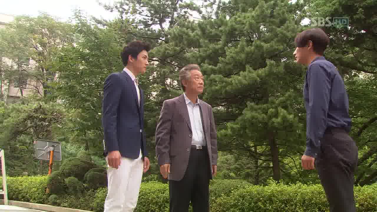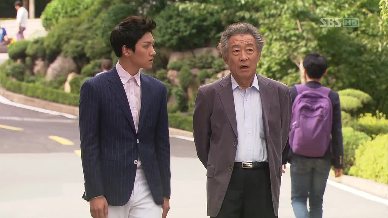 And they go do that very thing, only to be interrupted in their stroll by Ji-ho. Ji-ho asks the Professor why he hated him so much that he had him thrown out of the school? What did he do that was so wrong for him to act like that? Ji-ho had such high admiration for him, but the Professor just had to push him away like the coward that he obviously has turned out to be. Calling him out like a gangster, the Professor demands that Ji-ho just disappear from his eyes immediately. Ji-ho is happy to oblige, saying that he’s quitting the school and today is the last day he will ever call him ‘teacher.’ And with a nod-bow, Ji-ho turns his back and leaves… as the Professor calls him an ungrateful bastard for still not admitting his guilt. In-ha tries to calm down the Professor, as Ji-ho walks away wiping tears from his cheeks.