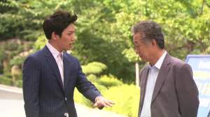 Morning dawns at Geumdan Construction, as Woo-jin arrives for his first day at work looking rather uncomfortable in his brand-new polo shirt. Scouting around for something, Jung-wook and his minions also arrive for the day to see Woo-jin disappear around the corner. Must have been a really short work day, as Jung-wook leaves again with his toadies in tow to see Woo-jin emerge from the restroom all suited up and ready to go. Minion #1 whispers into Assistant Guy’s ear that Attorney Choi from Boosung Group is waiting again in the reception area. Jung-wook says that Boosung must be chomping at the bit to make a deal… give him the documents he’s prepared and tell Attorney Choi that he’ll only meet him if Boosung will accept his conditions.