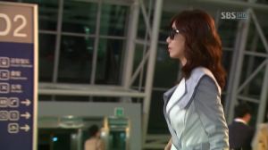 A very well-dressed woman power-walks her way through Incheon Airport. She wears her sunglasses at night, and purposelly strides through like she owns the place. But… Attorney Choi comes down the escalator and suddenly goes pale with a ‘wait, do I think that is who I think it is?’ look on his face. Pushing his way down the escalator being all rude, he gets out to the curbside to just miss the woman getting into a cab and driving away. He yells after her Dong-yi… LEE DONG YI!! The Maid is back in town, boys. Oh poopie.