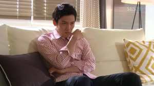 No slouch in the Hottie Department himself, Woo-jin is buttoning up his best dress shirt while flashing back to the day before, where he found out he was one of the winners of the Geumdan Construction Employee Lottery. With a shy smile on his face, he goes over to his dresser to pick up the picture of his Dead Deaf Dad (say that fast five times!). Woo-jin tells him to trust him and hang on just a little bit longer for his rightful revenge. A knock on the door, and Nam-joo comes in bearing a shopping bag wondering why Woo-jin is dressed so uncomfortably for the hot weather outside. Saying that she got it on sale, why doesn’t he put it on right now? Pulling it out of the bag, Woo-jin is a bit stunned to see that it’s a knockoff designer brand polo shirt. (I just now noticed the height difference between them — either Jeon Mi Seon is really short, or Jung Eun Woo is another freakishly tall actor in this production!)