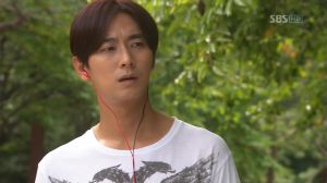Da-mi checks her DayPlanner to see that it’s Piano Lesson Time again, but there’s been no word from Ji-ho one way or the other. She muses that he needs to get out of the house when times are bad, so she pulls out her phone to text him a reminder of their lesson at 10:00 AM… she’ll be waiting outside the practice room for his arrival. Ji-ho has other ideas, as we see him dorky-jogging (all arms and legs!) down the trail with a newscaster’s voiceover telling us of the deepening rift between Professor Ha and Yoo Ji Ho. The announcer goes on to talk about the leaked unfinished composition and how Ji-ho was mentioned as his successor, but Ji-ho’s heard enough and yanks the buds out of his ears. His phone goes off to show him the text from Da-mi, and with a resigned sigh, he wanders off.