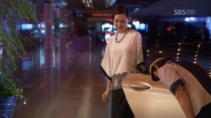The taxi carrying Nam-joo arrives at the front of the hotel and she rushes inside, at the same time that Attorney Choi is wandering the halls. Dong-yi’s patience has apparently expired, and as she thinks about getting up to leave, Attorney Choi gets to her first. Dong-yi stands up in horror and attempts to run away, but Attorney Choi has a death grip on her arm (*drink*) and drags her out of the lobby… as Nam-joo overhears their entire conversation. (Yay! Finally her eavesdropping skills come to good use!)