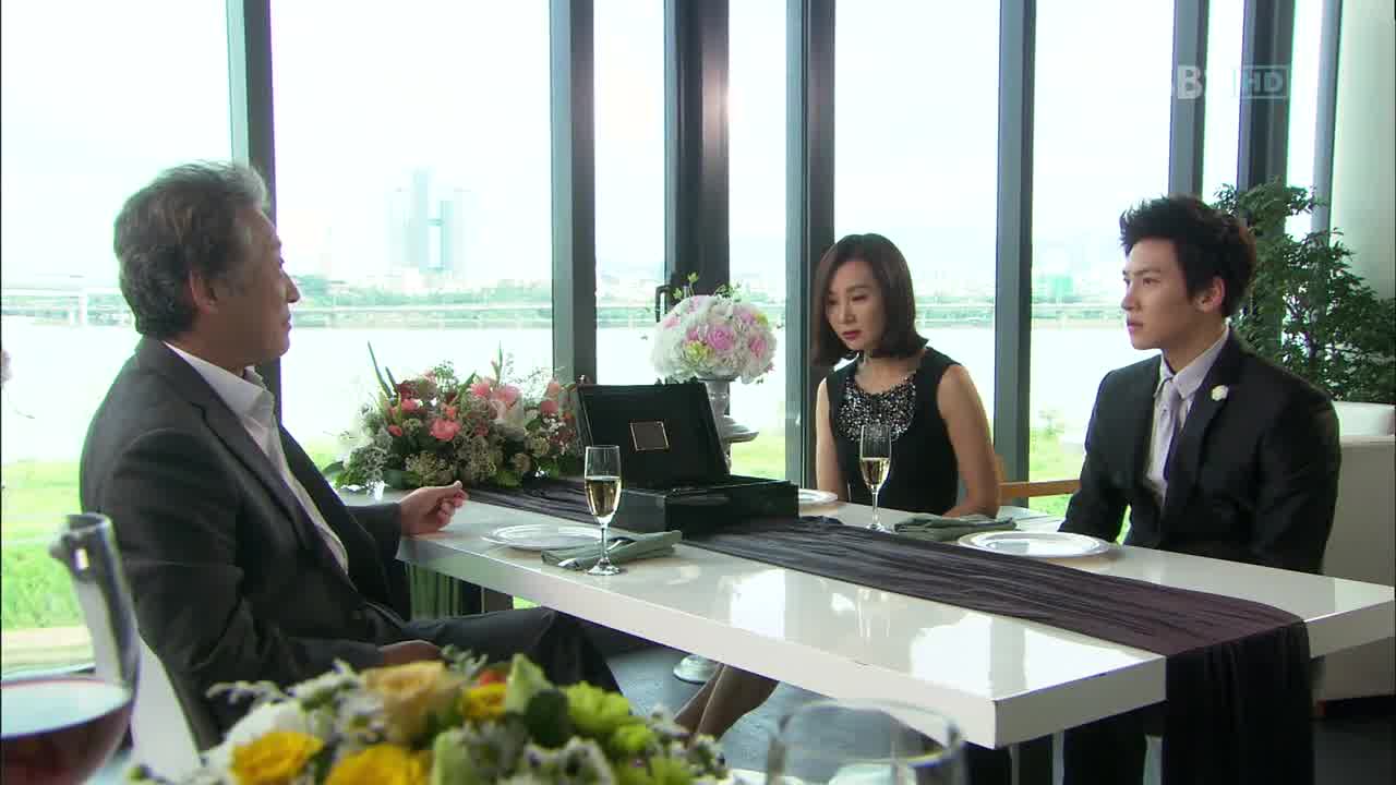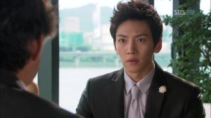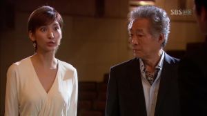 Back at Boosung, Attorney Choi and Yeong-rang are outside on the veranda congratulating each other for a job well done in lambasting Ji-ho while turning In-ha into a saint. Yeong-rang tells him that at least his appointment as Chairman of the Board is going well, and Attorney Choi says he plans to put that item on the agenda at the emergency board meeting the next day. Ji-ho yells from behind them that they can’t do that!! He says that as Boosung’s largest shareholder, there’s no freakin’ way he can approve of Attorney Choi’s appointment like that. Attorney Choi asks why Ji-ho stands in the way, as Ji-ho says that he can’t trust you, dude. Attorney Choi wants to know the exact details of why, when Ji-ho spills that he found out Choi was the one that sent the disparaging article about him to the newspapers, dirtying Boosung Group’s name and his in the process.