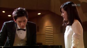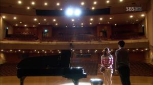 Yeong-rang orders Ji-ho off the stage, accusing him of jimmying the piano in order to make In-ha look bad at his first concert. In-ha, oddly composed for a change, asks Ji-ho quietly to do as he asks today, and just leave. Which Ji-ho does, placing his bouquet of flowers on the broken piano before slinking out the side entrance.