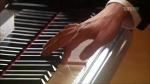In-ha plays through that old chestnut of Chopin’s Polonaise in A-flat major (so he really needed that F key in tune for sure), as we see Ji-ho back in his studio playing through the same piece (with waaaaay more feeling, I must add). Ji-ho hears Professor Ha’s voice in his head telling his that the piano cannot be trusted to someone hell-bent on ruining In-ha’s concert and Yeong-rang ordering his banishment from the building.