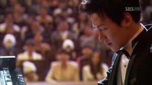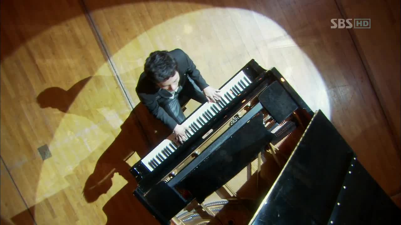 STOP THE PRESSES!! In-ha actually performs a piece that isn’t Chopin-related: the middle movement from the Beethoven Piano Sonata No. 8 in C-minor. Ji-ho plays through it as well, and there is some wicked awesome camerawork as the show flips back-and-forth between the two boys performing their own interpretations of the piece. All of a sudden Ji-ho stops and reflected in the piano lid, stares off into the distance…