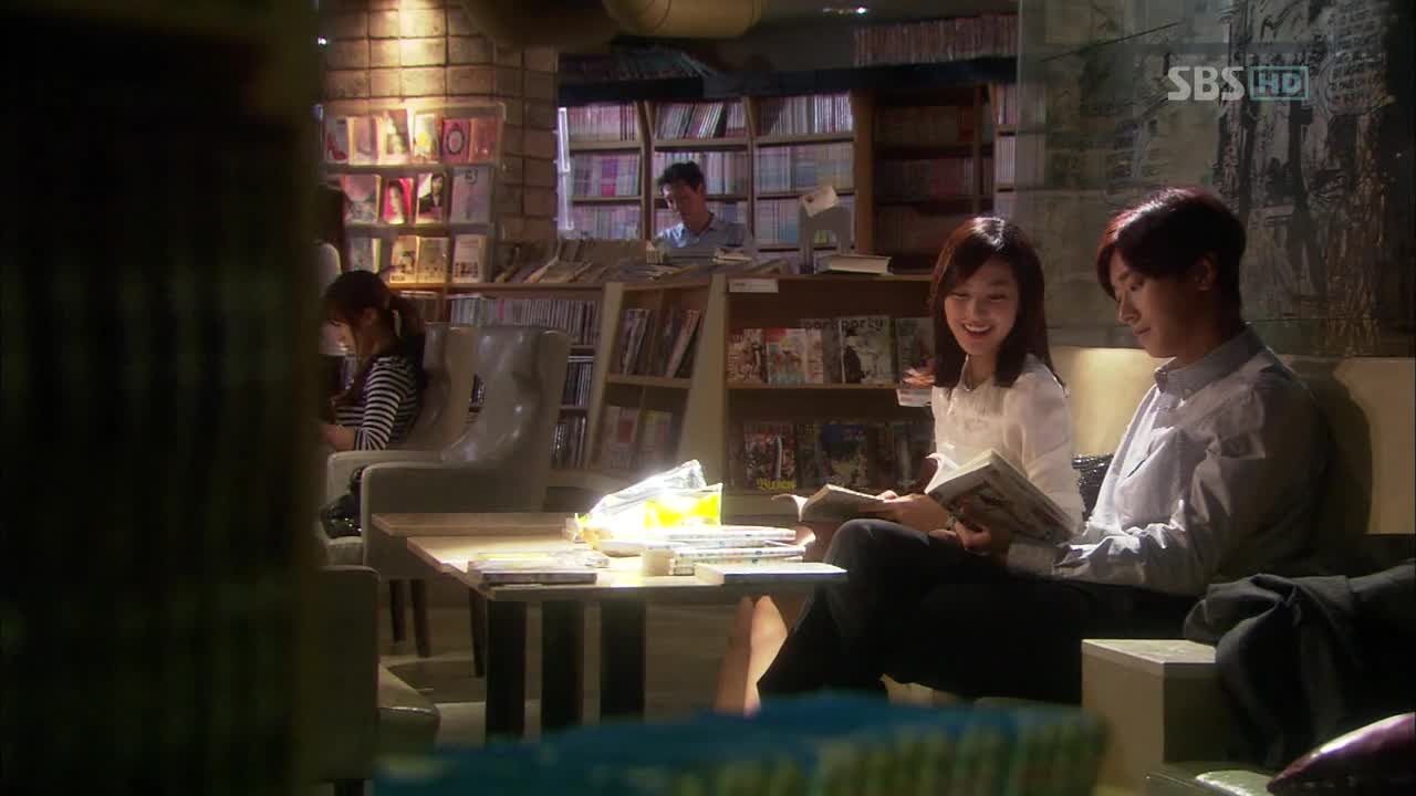 With an interesting version of the “Fur Elise” playing in the background, we see Ji-ho and Da-mi at a bookstore reading… manwah?!? Da-mi asks if he’s enjoying the comic booksbut Ji-ho says he doesn’t find it funny… underline the funny parts where he’s supposed to be laughing. Da-mi sighs and asks him why he still has that stick up his butt; can’t he just enjoy them for what they are? She orders him to fill his lungs with air and completely rid his brain of all thoughts. Ji-ho still doesn’t understand that request, and still still doesn’t find the books funny at all. Da-mi rips it from his hands and says if it’s not fun, then maybe they should just go as she stacks up the reading materials. Ji-ho says they’ve already paid for the reading time, so maybe they should stay there a little longer to justify the cost.