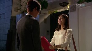 He walks inside and runs into Nam-joo taking off her apron and wonders why she’s there so late. She apologizes for making some extra side dishes that took longer than expected, and tries to make her escape. But Attorney Choi finally recognizes her as Hong Soo Pyo’s wife, since he saw her at the police station oh so long ago. Nam-joo turns around and formally greets him and confirms that she is the person the employment agency sent over. She didn’t realize it was him until she saw the pictures on the sideboard and then her memory came back. Attorney Choi asks if she’s okay with continuing on for him, knowing that he’s Yeong-rang’s second-in-command? Nam-joo sucks it up and says that she doesn’t think that’s a good enough reason to stop working there; it’s ancient history and she’s been busying raising her children, so she hasn’t had time to even think about it. But if HE’s uncomfortable with her being there, then she will stop coming over. As she turns to leave, he says she can stay in his employ but to make sure she’s gone by the time he returns home. He’s kinda picky that way. [snerk]