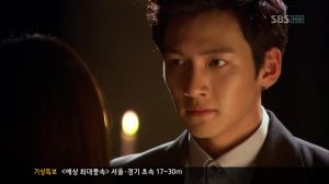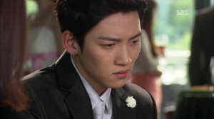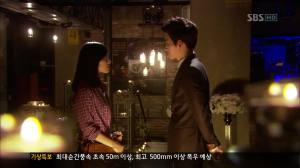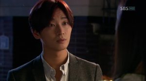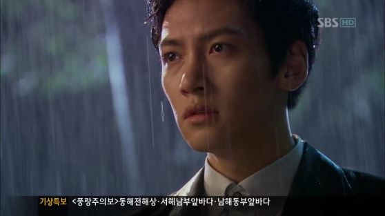 Da-mi looks confused over hearing the successor news, as her phone rings and it’s Ji-ho calling. She orders him to stay where he is so she can go straight to him. Apologizing to In-ha for having to leave so suddenly, she turns but In-ha grabs her wrist (*drink*) to keep her from going. He pleads with her not to go; just stay with him tonight. Da-mi says that she still needs to go, but she’ll call him later. She turns to leave again, but this time In-ha is more forceful in grabbing her wrist (*drink*) and yells at her to NOT LEAVE HIM!!! He just needs this one favor from her; he was so excited to be seeing her tonight that he ran all the way to the restaurant. Can she not also think of him in that way? Da-mi says she can’t hear a word In-ha says right now, because all she can think about is Ji-ho. She’s so worried… that she cannot even bring herself to congratulate In-ha on the successorship. Pulling her arm out of his hand, she hurries out. Him waiting a few beats to compose himself, he rushes out after her into the pouring rain. Watching her get into a waiting cab, In-ha stands there simultaneously getting soaked and having his heart broken into a million pieces.