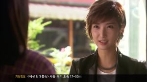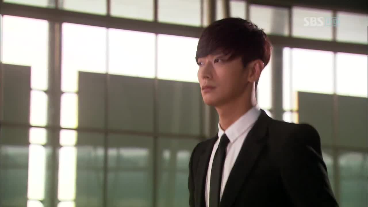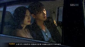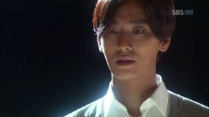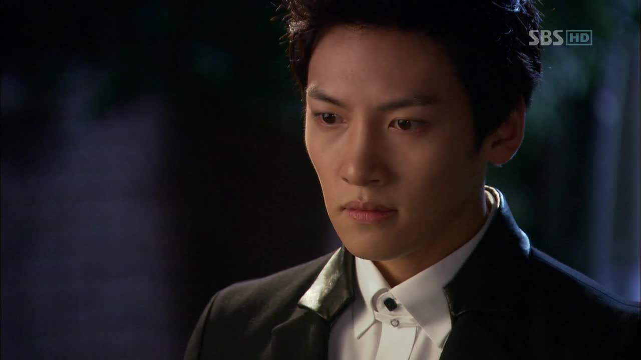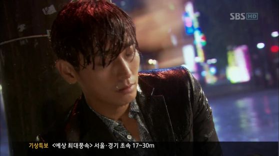 Ji-ho wanders and stumbles down the street in the same pouring rain, finally finding a street lamp post to fall against. Collapsing to the ground, the passersby move in slow-motion around him, no one caring a bit about the gorgeous wet guy with no socks on sitting out in the rain. He remains there for a good long time, until Yeong-rang and Secretary Oh walk over to scoop him up and bring him home. Yeong-rang tries her best again to be the doting mother while cradling Ji-ho’s head in the car, and they take off just as Da-mi pulls up in the cab. Not seeing him around, she tries calling but gets no answer.