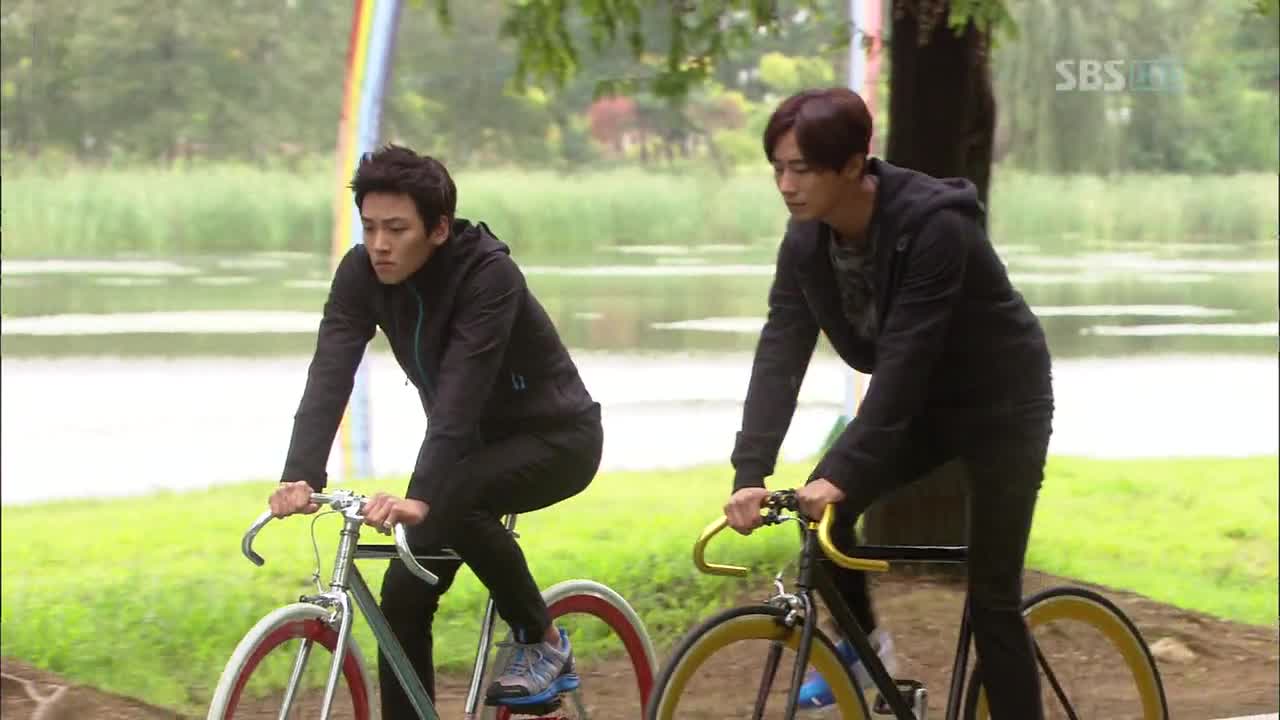 The next day, Ji-ho is biking down the path, as In-ha comes pedaling up alongside him. Ji-ho wonders why he’s not all beat, as In-ha says he’s not tired; it’s not like music is hard work. (Oh ye of little faith…) Ji-ho looks exasperated over that flippant answer, but asks In-ha if he’s still convinced that Ji-ho tampered with his piano. In-ha, still feisty, crabs back that Ji-ho is the prime suspect in a lot of things swirling around In-ha these days… of course, he’s going to suspect him! Ji-ho needs to go off and self-reflect on his bad deeds instead. (What a prick!!) Ji-ho sighs and just wishes In-ha well, but take into stride all the goodwill he’s receiving lately. In-ha says Ji-ho has no standing to say anything like that to him, since he’s already been rejected by Professor Ha. Ji-ho dips his chin, as In-ha goes in for the kill and says that Ji-ho’s face looks like the country hick from Jebu-do again. Why did Ji-ho live his life with such greed; he would have lost everything anyway… and In-ha takes off down the path, leaving Ji-ho contemplating his words. (In-ha just graduated to SUPER PRICK!!!)