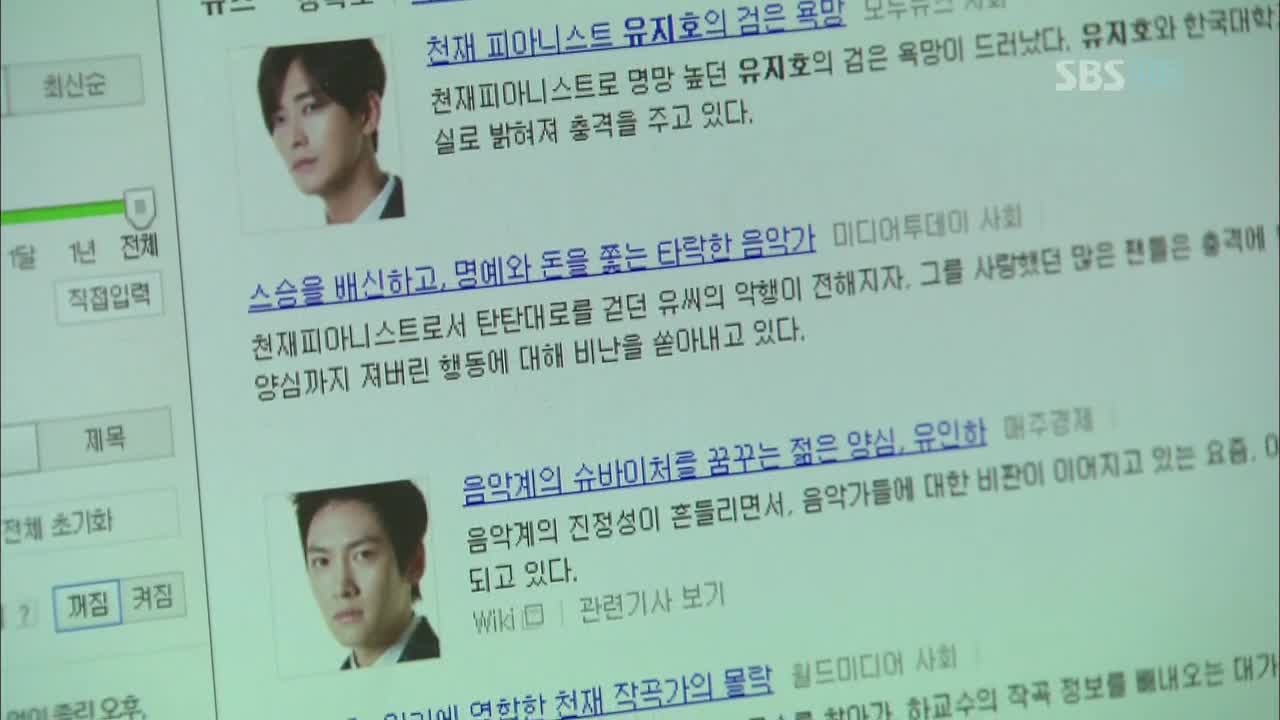 Yeong-rang gets all false indignant over why they think so little of Boosung Group and her son in particular, especially after all the bags of money they’ve spent on advertising with these newspapers. In-ha still wants to know if Ji-ho’s really serious about joining forces with Professor Jung, as EvilStep pipes up to ask if it’s the same Professor Jung who charged Professor Ha with plagiarism and now they’re bitter enemies? No way, Jose! Attorney Choi says that the negative press is mounting, and reaction from the netzens have pretty much shut down Ji-ho’s fansite. Yeong-rang spits that everyone is so shallow, worshipping Ji-ho as the National Treasure Composer… and they turn against him in one freakin’ day? Ji-ho stands up and says that he must meet with Professor Jang first before anything else happens. Yeong-rang asks him what he plans to do, as Ji-ho turns to her and asks if there might be another method to reveal the truth?