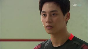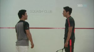 On the squash court, Damsari… oops, I mean Jung-wook and Woo-jin are in the middle of a spirited match (and not using stand-ins at all). Woo-jin whiffs an easy serve and hits the ground hard, but Jung-wook offers his hand to help him up, saying that because he won their match, Woo-jin has to do something for him, so will he stand by Jung-wook’s side now? But Woo-jin counters with his own proposal: in his own quest to bring down Boosung, sign a contract saying that he’ll never fire Woo-jin. Jung-wook’s okey fine with that… and calls him “Danny Hong” instead. Woo-jin doesn’t understand, until Jung-wook explains that he’ll be introduced as Danny Hong instead; a second-generation Korean-American who graduated from Columbia University with a degree in economics. Woo-jin, all dripping with sweat, repeats back Danny Hong… Danny Hong…